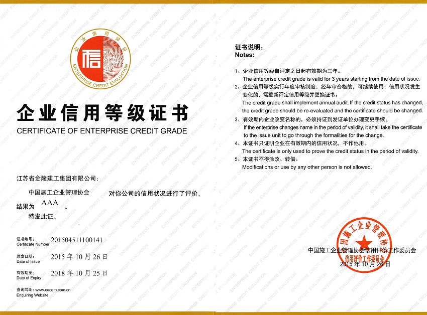 2015企業(yè)信用等級證書AAA