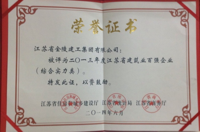 2014年江蘇省建筑業(yè)百強(qiáng)企業(yè)(綜合實(shí)力類)獎(jiǎng)狀