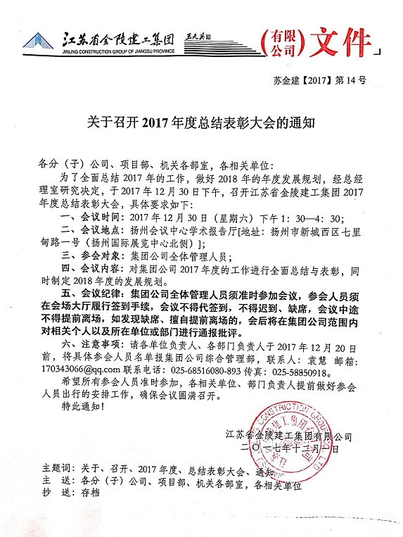 關(guān)于召開2017年度總結(jié)表彰大會(huì)相關(guān)會(huì)議的通知