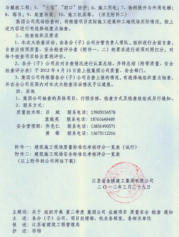 關(guān)于組織開展第二季度集團(tuán)公司在建項(xiàng)目質(zhì)量安全大檢查的通知