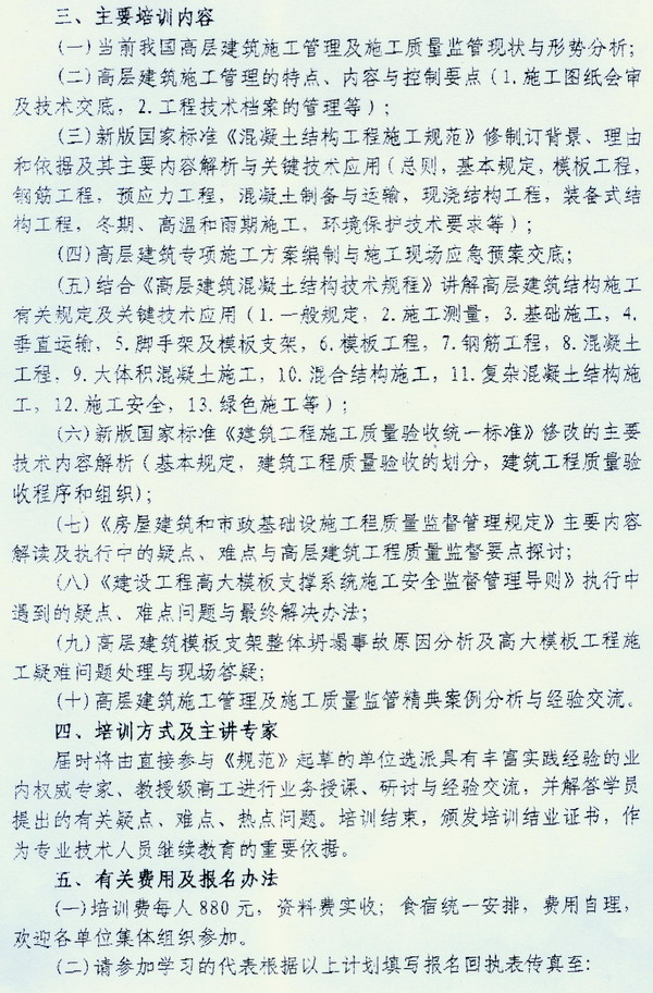 關(guān)于繼續(xù)舉辦“2011年全國高層建筑施工關(guān)鍵技術(shù)應(yīng)用及施工質(zhì)量監(jiān)督管理業(yè)務(wù)知識培訓(xùn)班”的通知