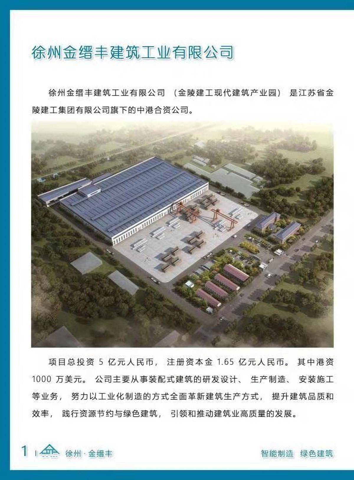 徐州金縉豐建筑工業(yè)有限公司(金陵建工現(xiàn)代建筑產(chǎn)業(yè)園)是江蘇省金陵建工集團(tuán)有限公司旗下的中港合資公司。公司注冊資金1.65億元人民幣。其中外資1000萬美元。公司將充分發(fā)揮金陵建工集團(tuán)研發(fā)、設(shè)計(jì)、生產(chǎn)、施工、投資一體化的優(yōu)勢,努力以工業(yè)化制造的方式全面革新建筑生產(chǎn)方式,提升建筑品質(zhì)和效率,踐行資源節(jié)約與綠色建筑,引領(lǐng)和推動(dòng)建筑業(yè)高質(zhì)量的發(fā)展。